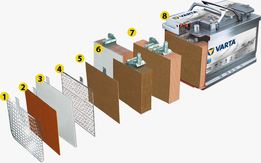 1.1 VARTA AGM được tạo ra dựa trên nguyên lý sợi thủy tinh (fiber glass mat) hấp thụ Axit sulfuric.